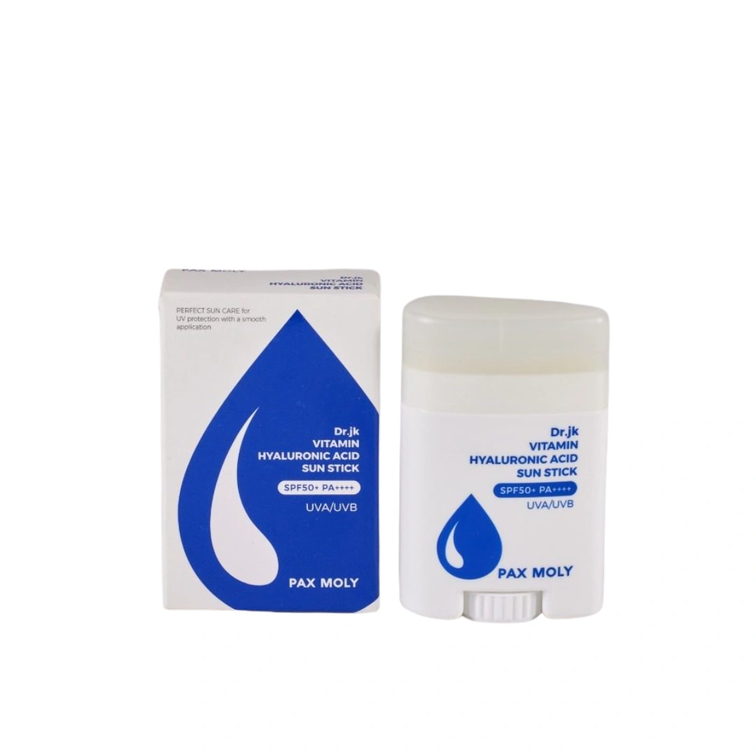 The Pax Moly Dr.jk Vitamin Hyaluronic Acid Sun Stick is a lightweight, waterproof sunscreen stick offering SPF 50+ PA++++ protection against UVA and UVB rays. It’s non-sticky, leaves no greasy feeling, and can be used before and after makeup application. It also provides brightening and wrinkle improvement benefits.