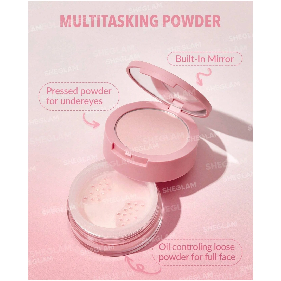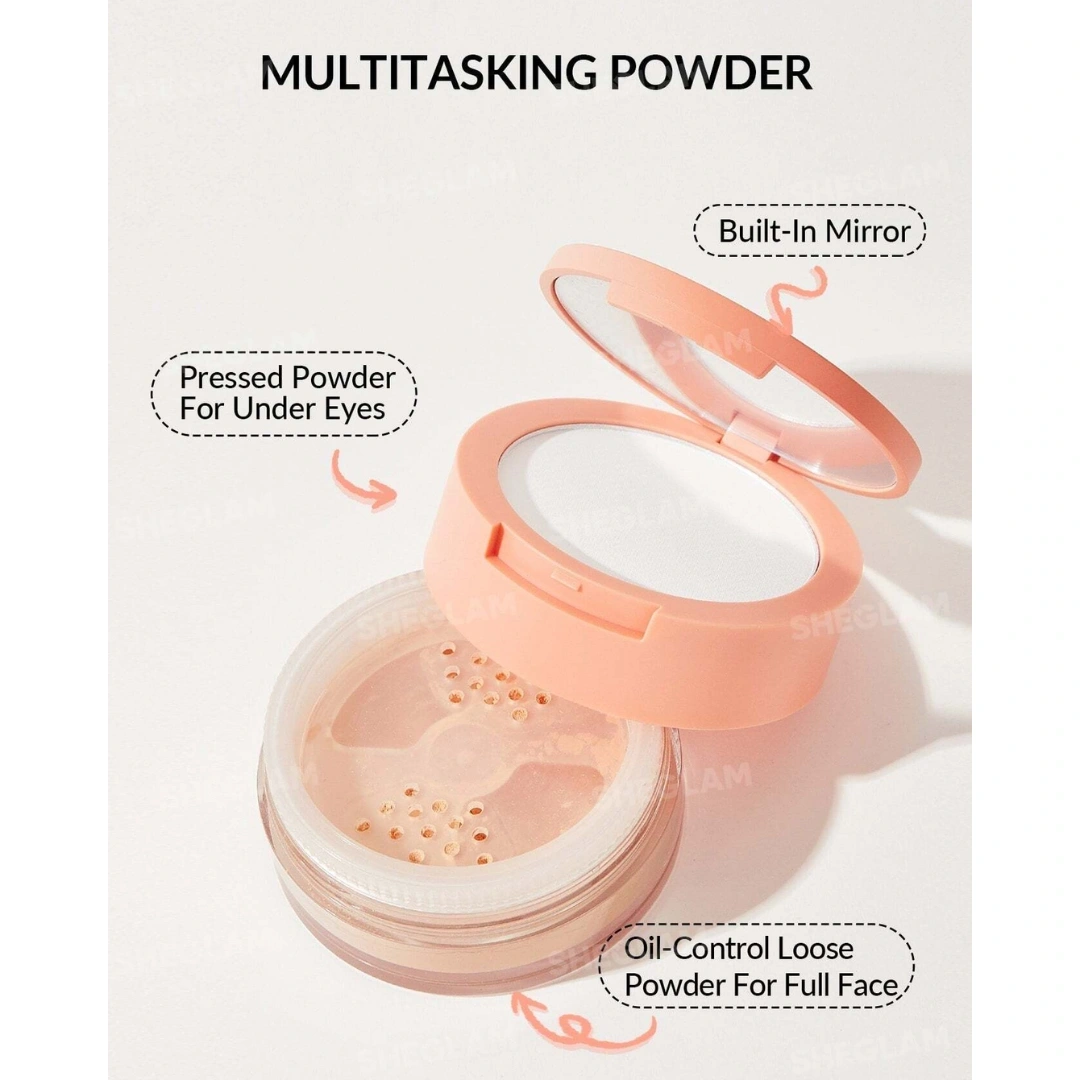 You and your glam have got a good thing going. Don't let it fade by adding our 2-in-1 setting powder to your beauty routine. On the top level you'll find a silky, moisturizing pressed powder that's uniquely made to lock in your under eye makeup (and fill in any wrinkles), and on the bottom level, a sheer, oil-absorbing loose powder to keep your face fresh and shine-free from AM to PM.